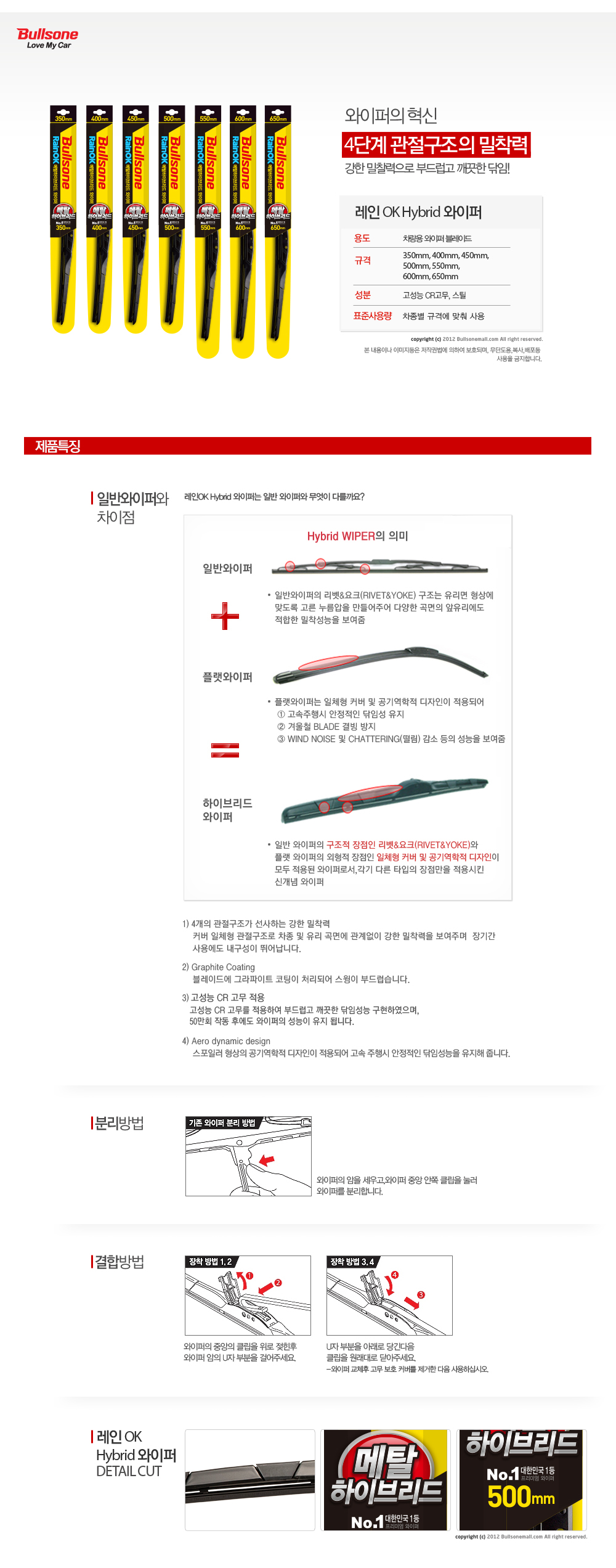 | 1. 품명 및 모델명 | RainOK 하이브리드 와이퍼 (제조연월:판매일로부터 18개월 이내에 제조된 상품만 취급 / 정확한 제조연월일은 해당 제품에 표기되어 있습니다.) |