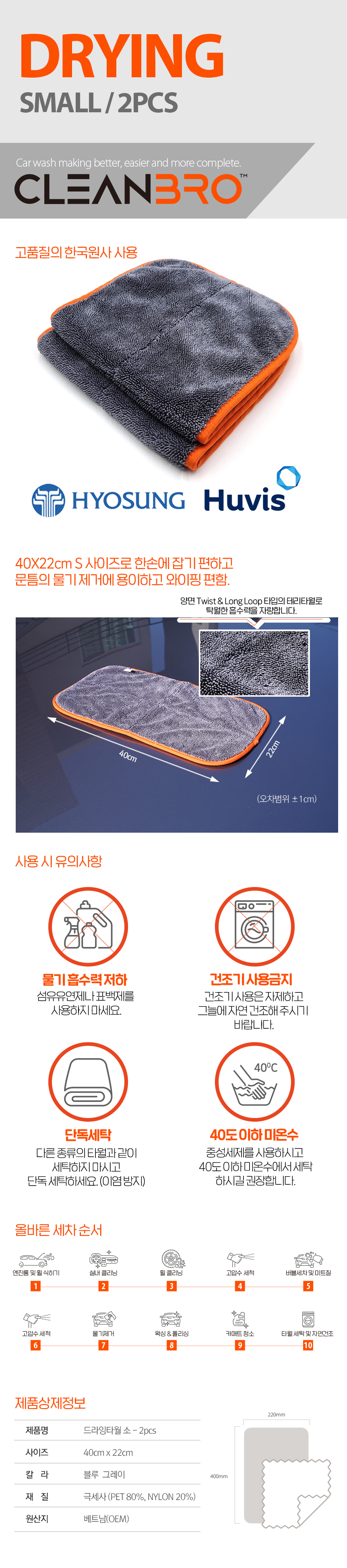 클린브로 양면 드라잉타월 S 번들(2pcs)