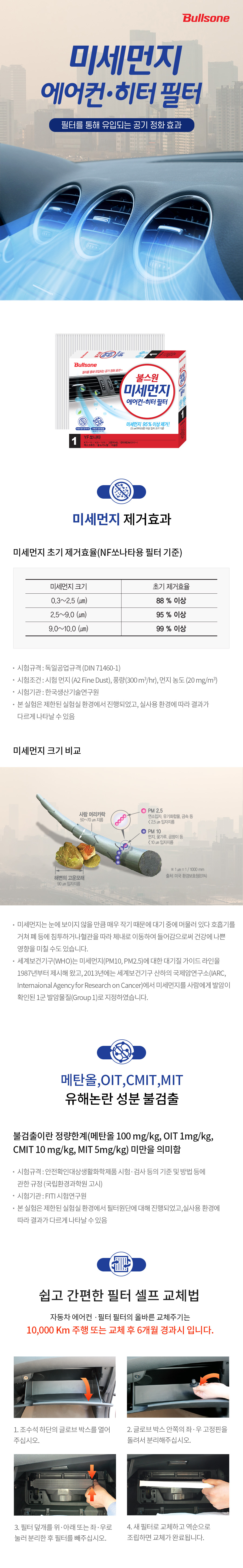 | 1. 품명 및 모델명 | 자동차용 에어컨·히터 필터 / 불스원 미세먼지 에어컨·히터 필터 (제조연월:판매일로부터 18개월 이내에 제조된 상품만 취급 / 정확한 제조연월일은 해당 제품에 표기되어 있습니다.) |
