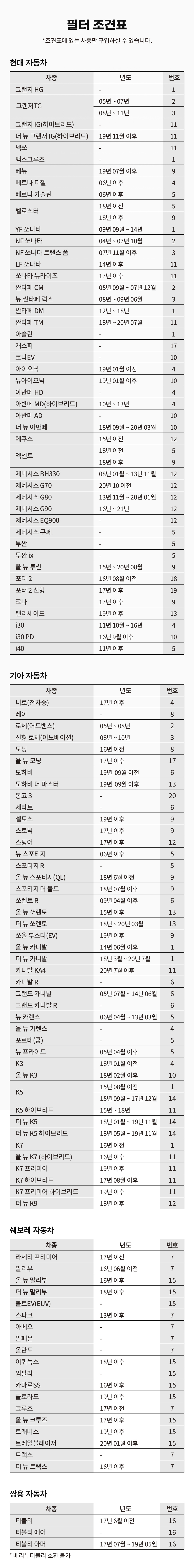 | 필터. 2011년식 쏘울에 호환되는 제품 번호 | 김** 2022.02.28 | |