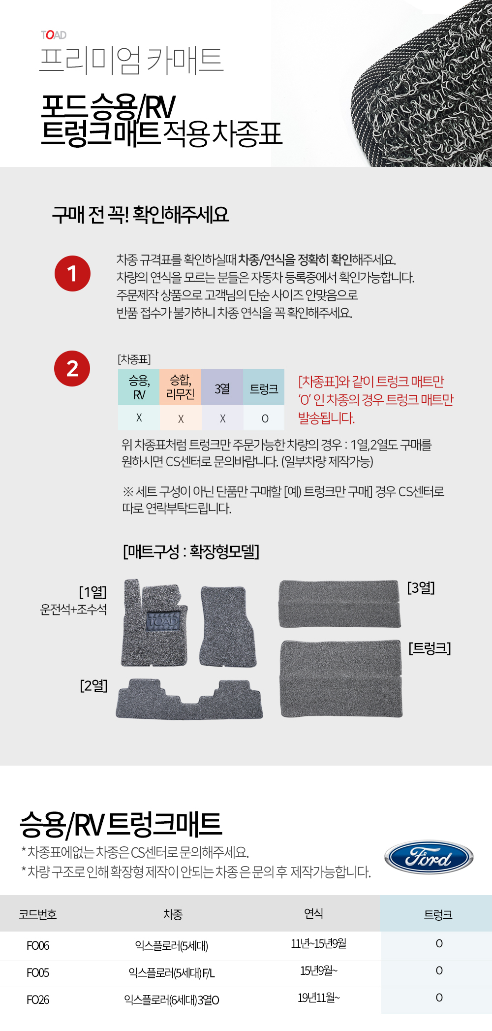 토드 프리미엄카매트 포드 승용/RV 트렁크매트