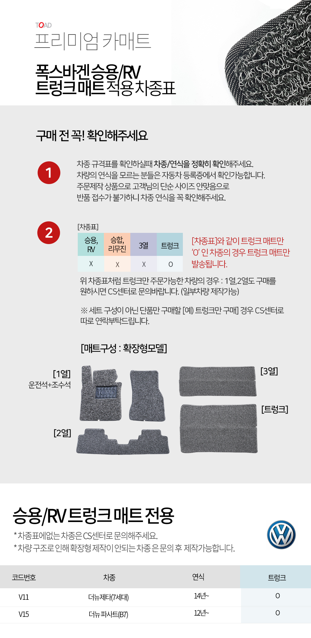 토드 프리미엄카매트 폭스바겐 승용/RV 트렁크매트