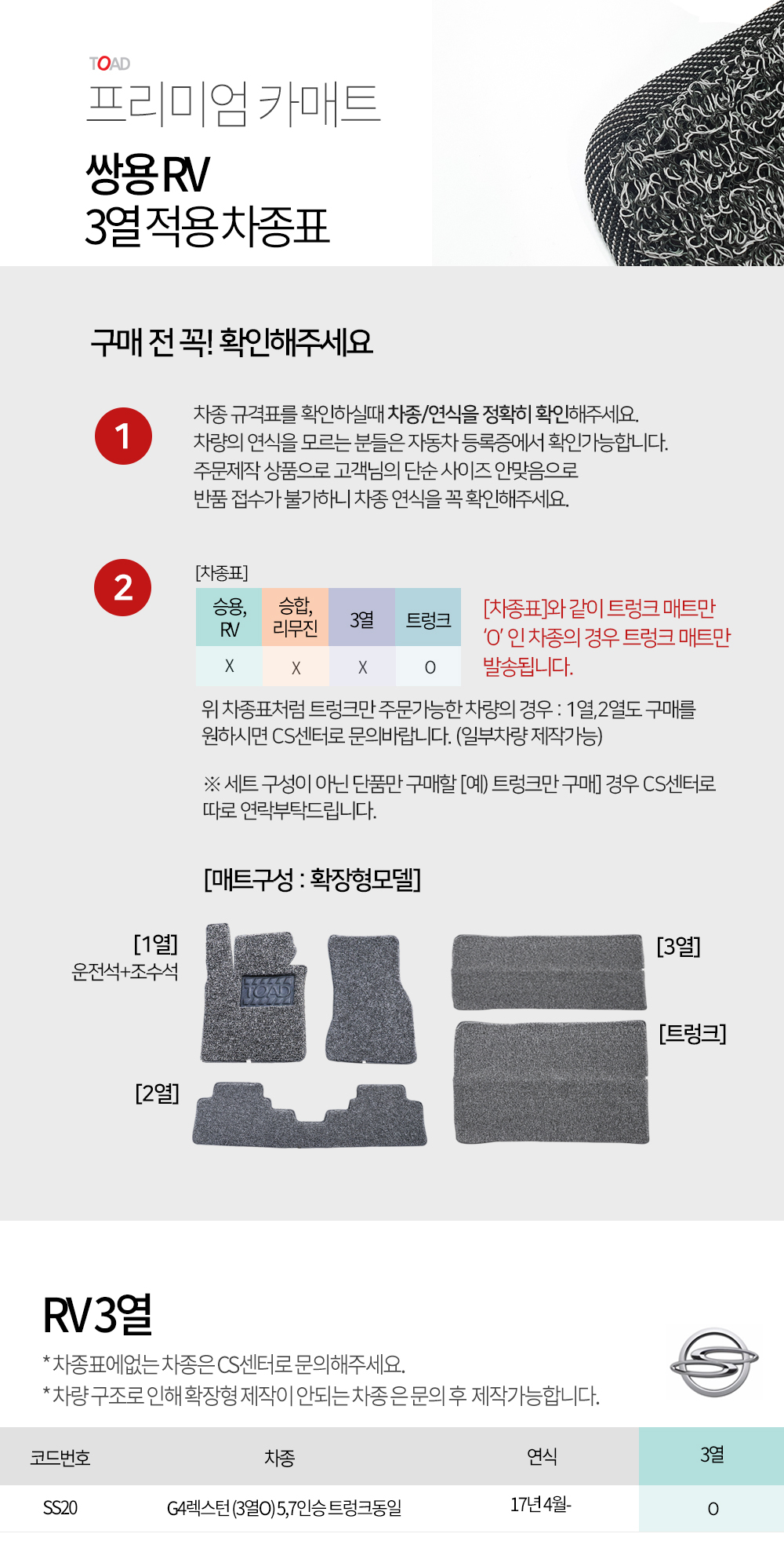 토드 프리미엄카매트 쌍용 승용/RV 3열