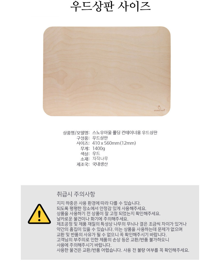 | 1. 품명 및 모델명 | 스노우아울 폴딩 컨테이너용 우드상판 |
