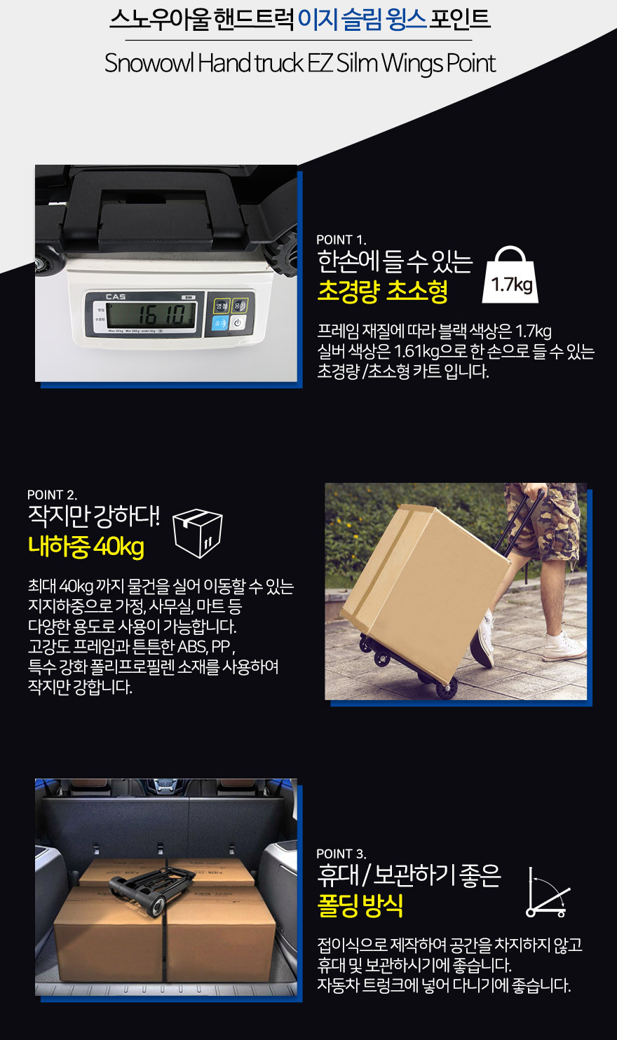 | 1. 품명 및 모델명 | 스노우아울 핸드트럭 이지슬림 윙즈 |
