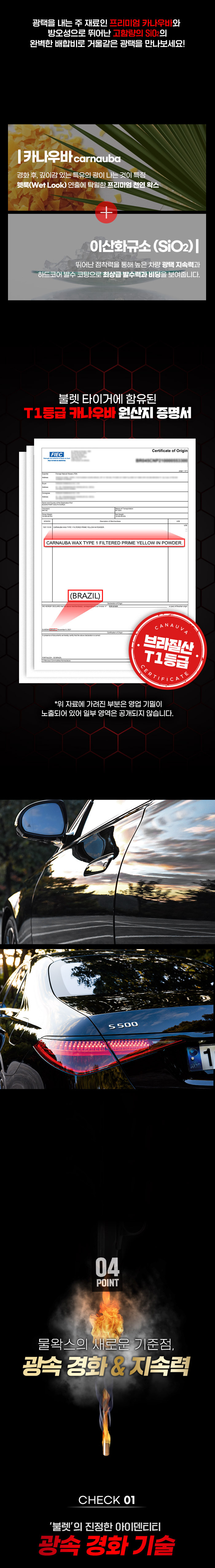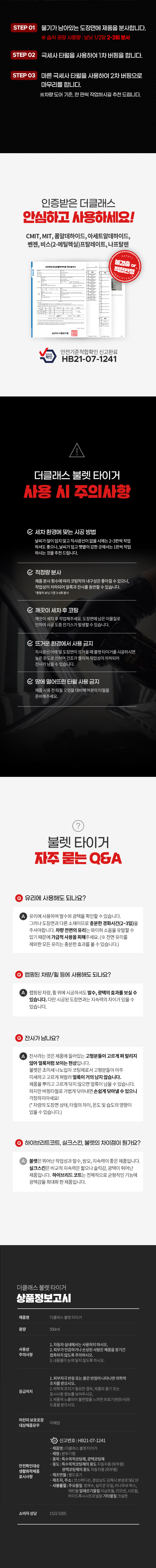 더클래스 불렛 타이거 물왁스 퀵디테일러 유리막코팅제 500ml