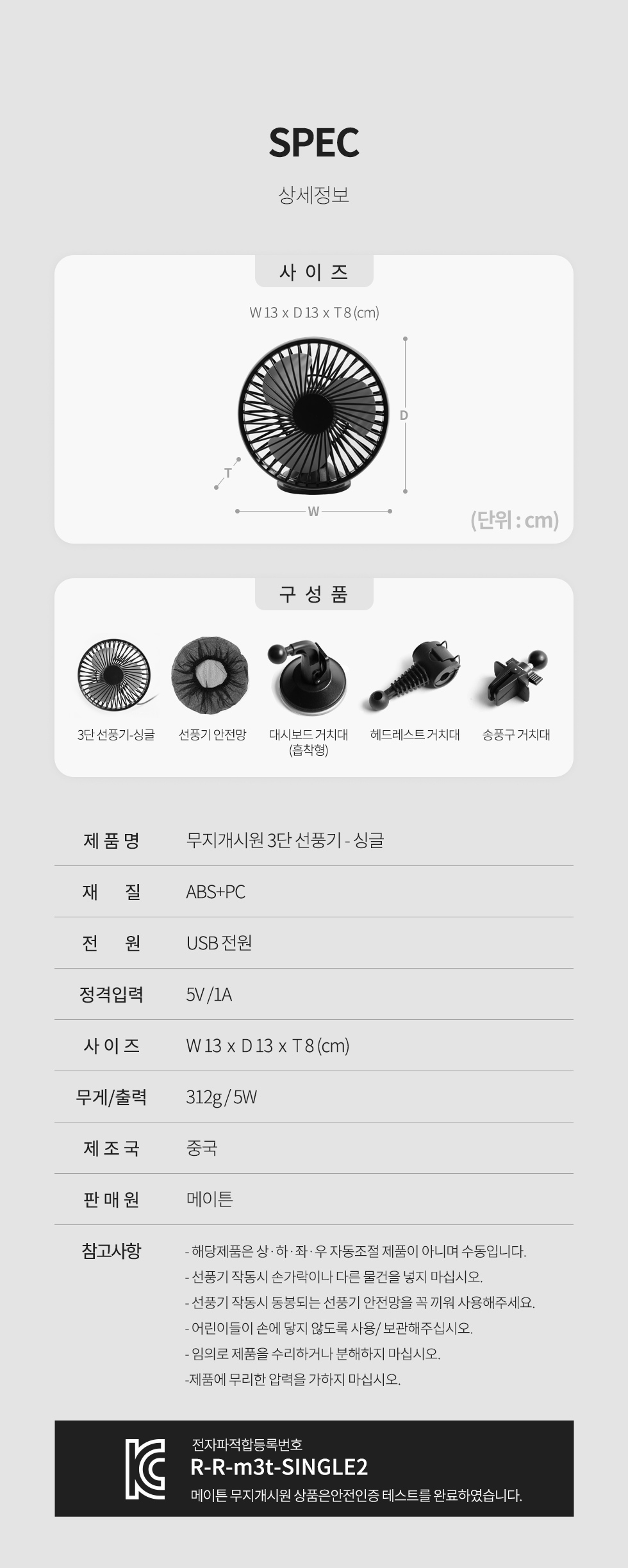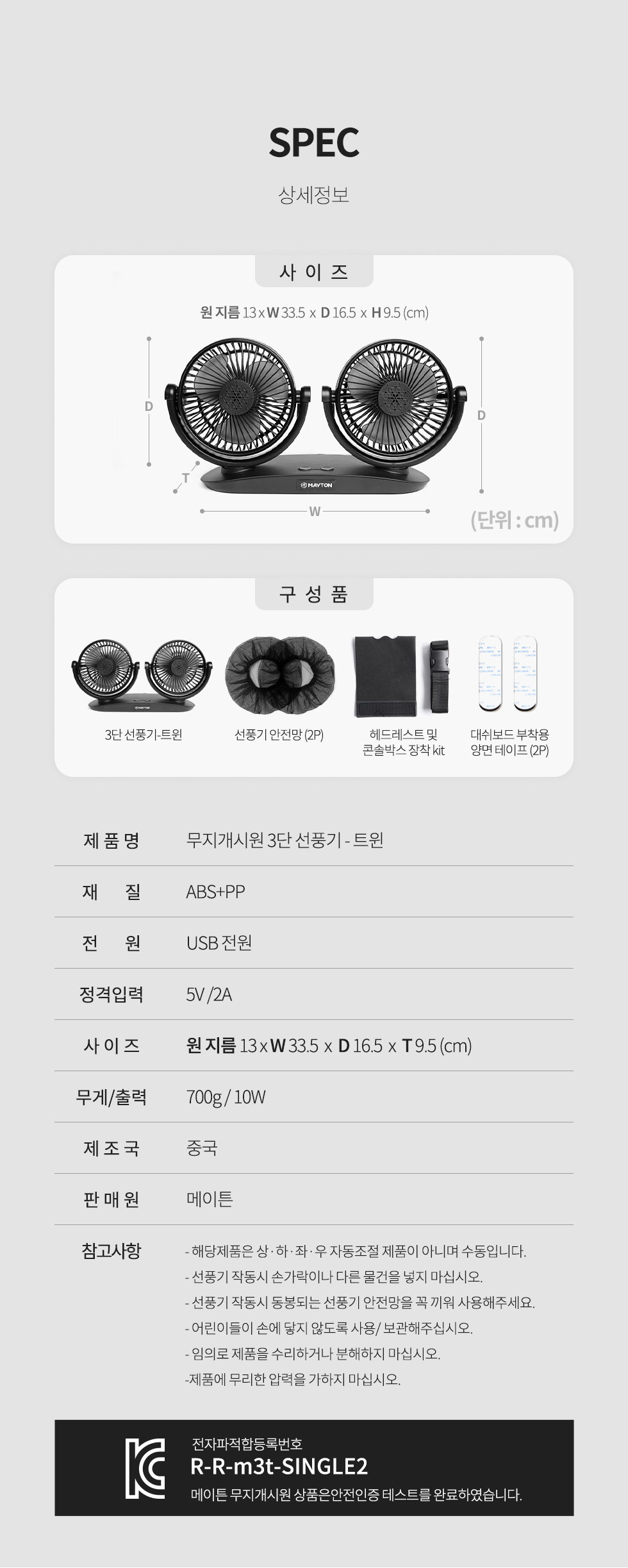 | 1. 품명 및 모델명 | 메이튼 차량용 선풍기 서큘레이터 |
