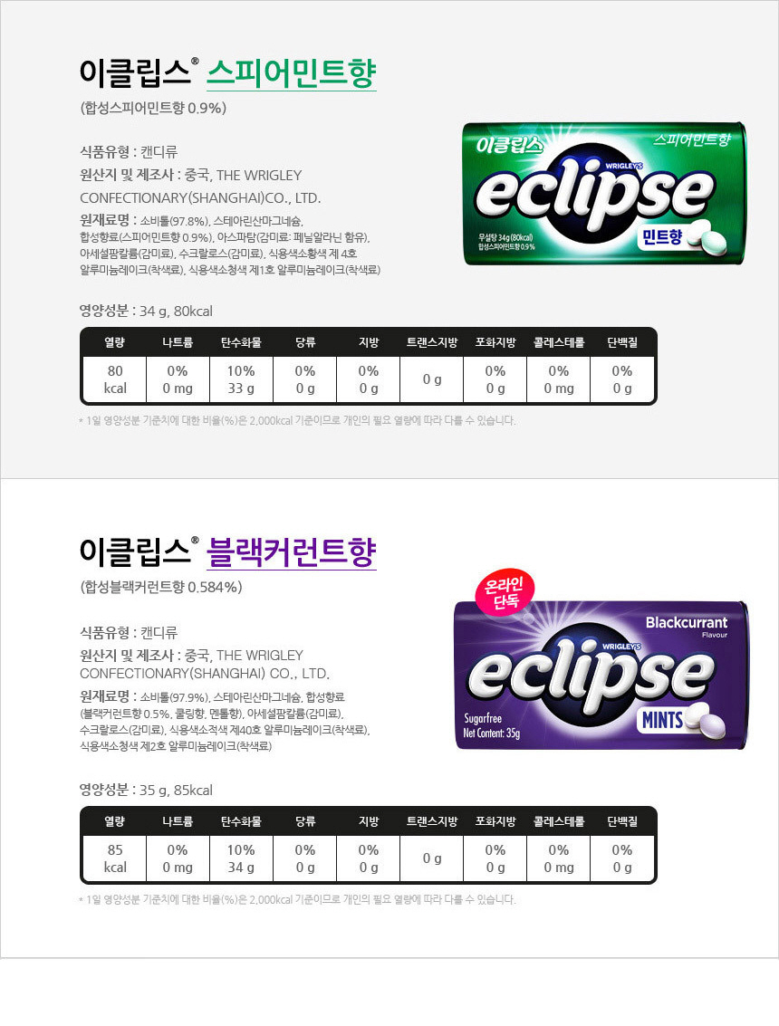 | 1. 품명 및 모델명 | 이클립스 캔디 페퍼민트향 |