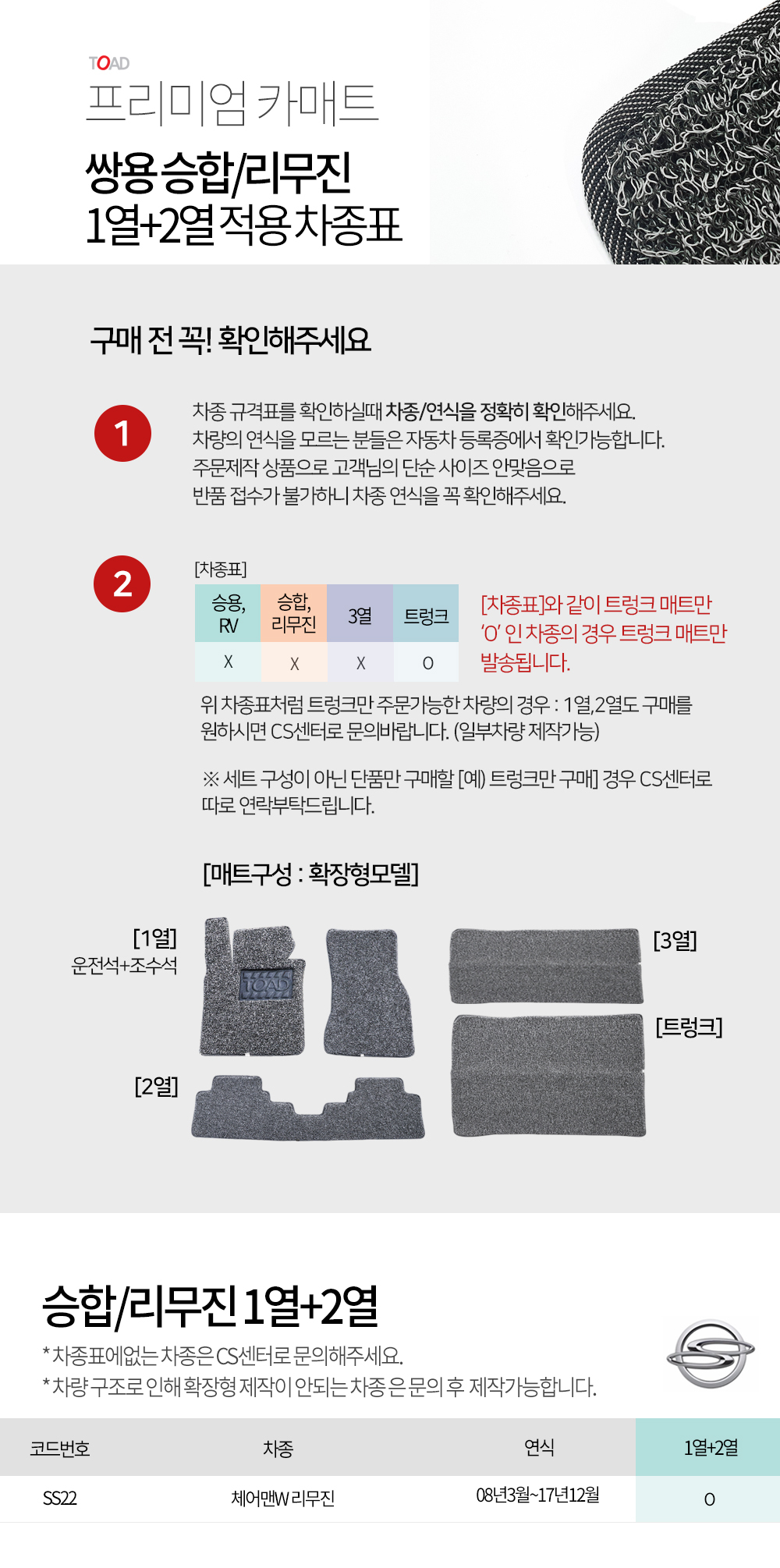 토드 프리미엄카매트 쌍용 승합/리무진 1열+2열