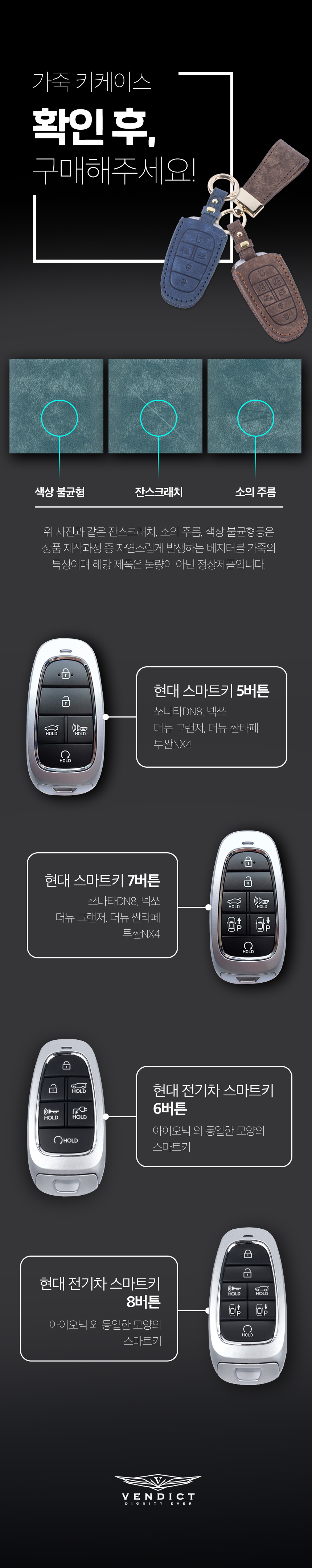 | 1. 품명 및 모델명 | 벤딕트 자동차 가죽 스마트 키 케이스 현대 투싼NX4 쏘나타DN8 넥쏘 더뉴그랜져 더뉴싼타페 스타리아 라운지 아이오닉5 |