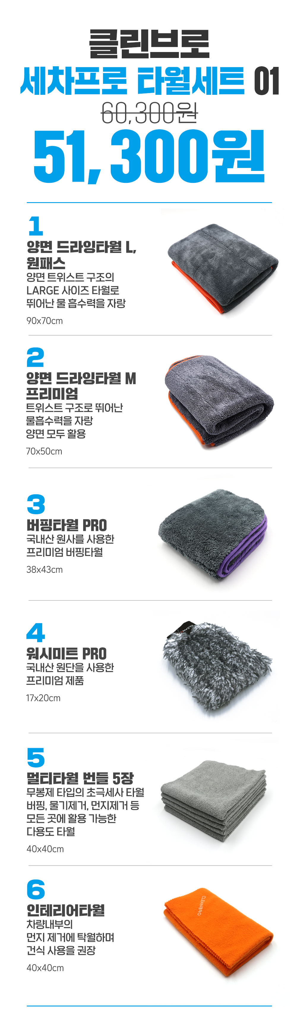 | 1. 품명 및 모델명 | 클린브로 세차프로 타월세트 01 |
