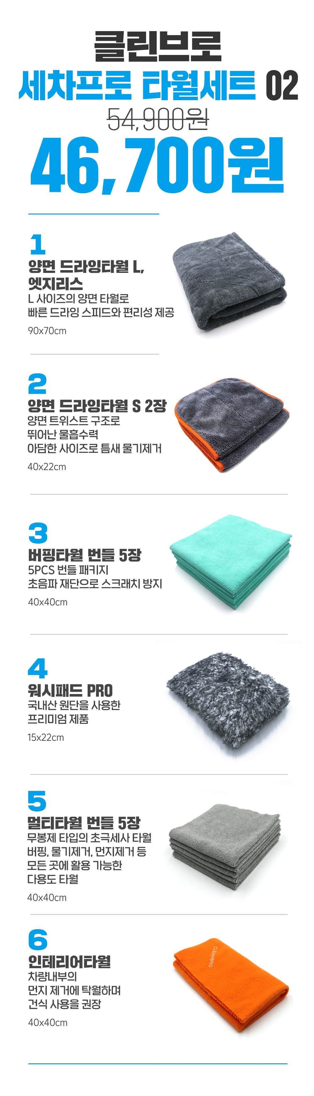 | 1. 품명 및 모델명 | 클린브로 세차프로 타월세트 02 |