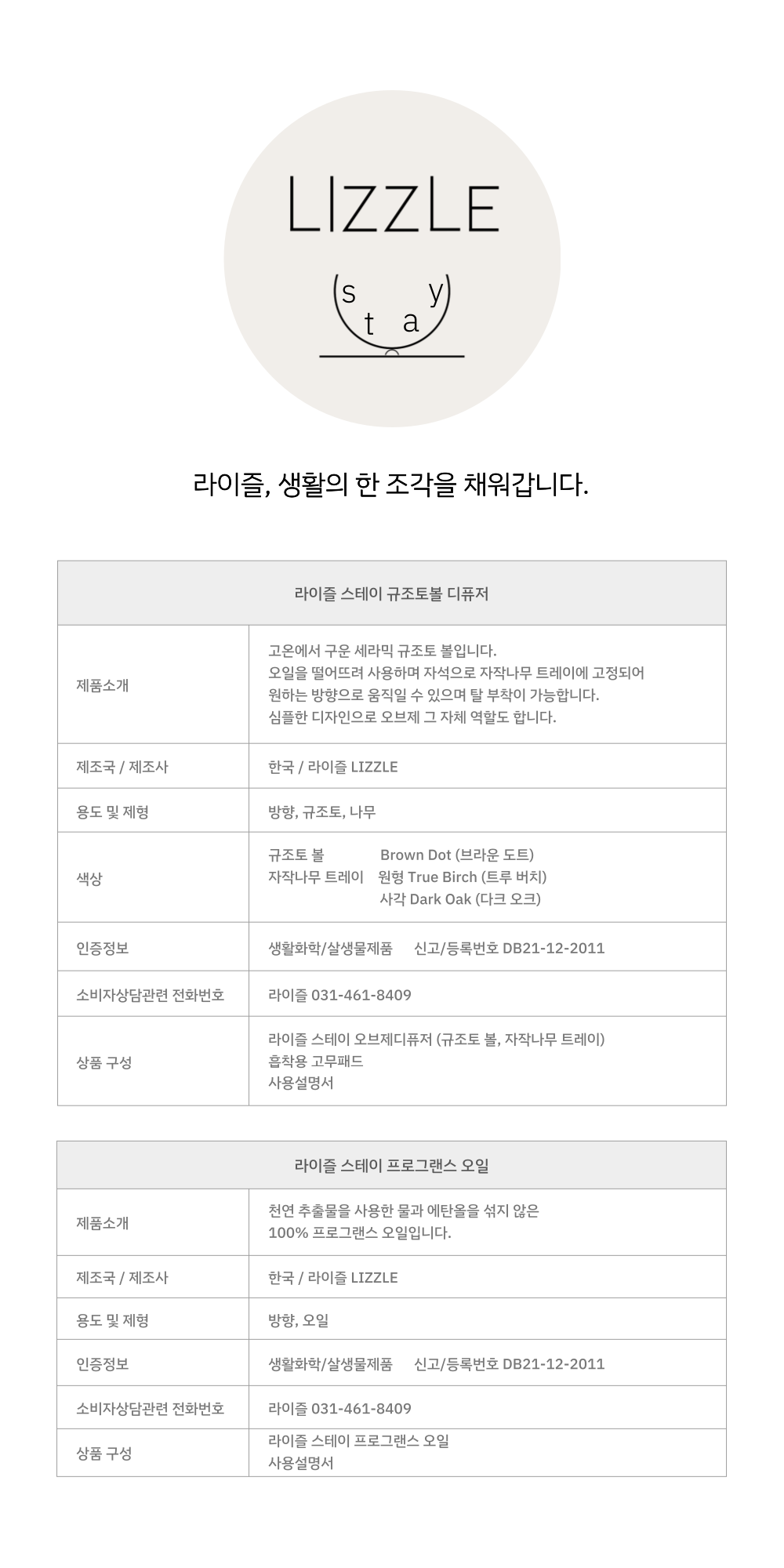 | 1. 품목 및 제품명 | [라이즐] 스테이 규조토볼 차량용 천연 디퓨저 |