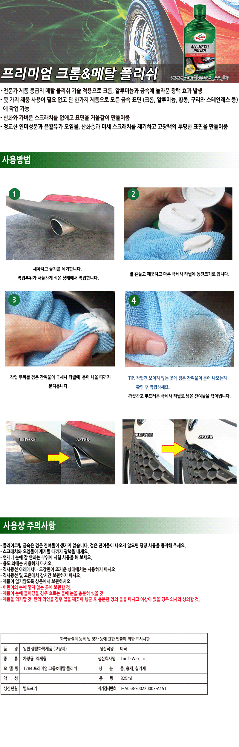 1. 품명 및 모델명 터틀왁스 프리미엄 크롬&메탈 폴리쉬 325ml (T284)